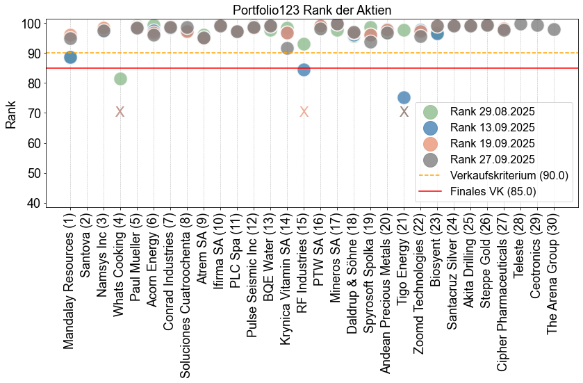 *Verkaufskriterium beim Kinderdepot: 85.0 (fettgedruckt: Aktie kurz vor Verkauf)