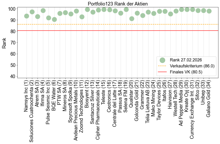 Der Rang der Aktien im Depot im Februar:
