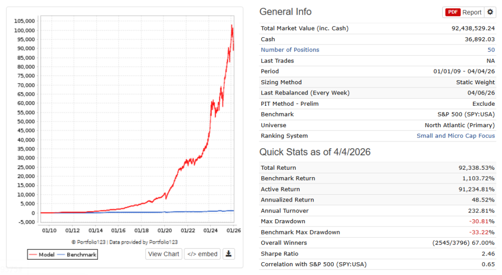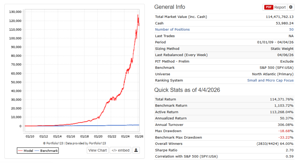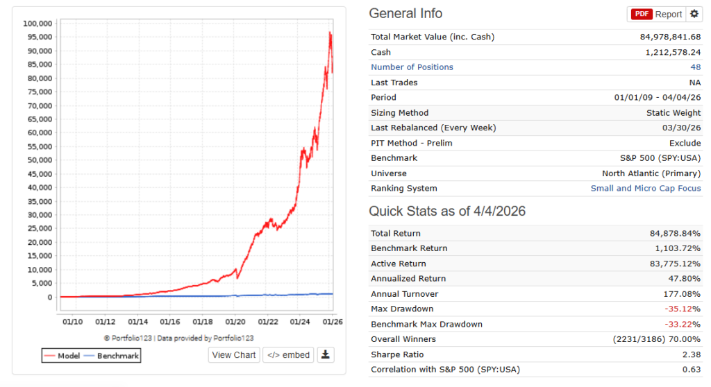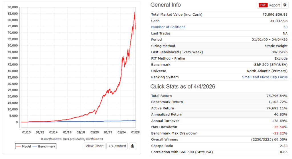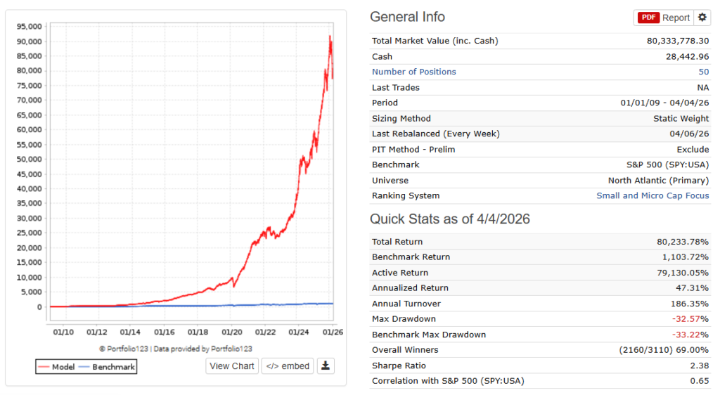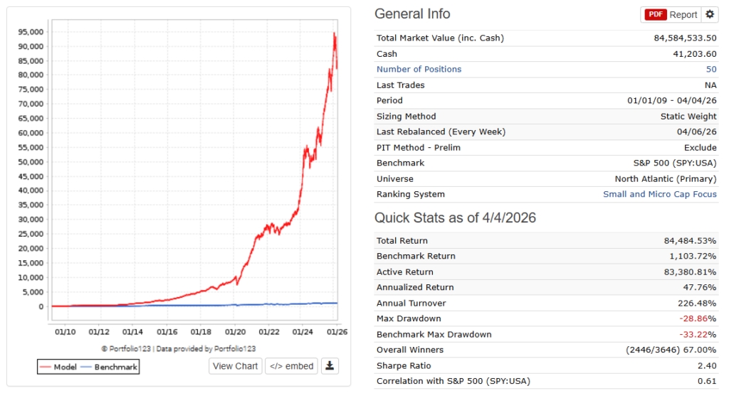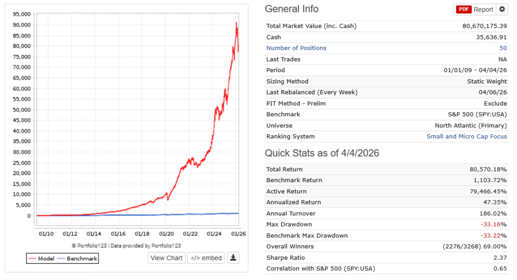 Konkrete Umsetzung in Portfolio123 und Ergebnisse: